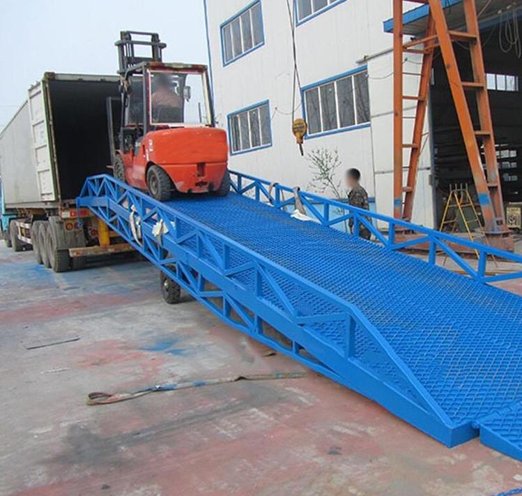 威海登車橋-威海移動登車橋-集裝箱裝卸貨平臺-液壓裝車橋。移動登車橋采用人工液壓動力,不需外接動力電源,只需單人操作,就可以實(shí)現(xiàn)貨物的安全快速裝卸,節(jié)省時(shí)間和人力資源。它可使企業(yè)減少大量勞動力,成倍提高裝卸作業(yè)效率,加快貨物流通速度,獲取更大經(jīng)濟(jì)效益。移動登車橋被廣泛應(yīng)用于無裝卸設(shè)備的貨臺及流動裝卸場所,是與叉車配合使用的貨物裝卸輔助設(shè)備。并可以根據(jù)不同的車型及裝車過程車廂的高度變化進(jìn)行調(diào)節(jié)。廣泛應(yīng)用于工廠運(yùn)輸備料、物流集散中心運(yùn)輸貨物、港口碼頭上下集裝箱,隨著工礦企業(yè)的發(fā)展移動式液壓登車橋越來越被廣泛的應(yīng)用到各行各業(yè)卸貨中。