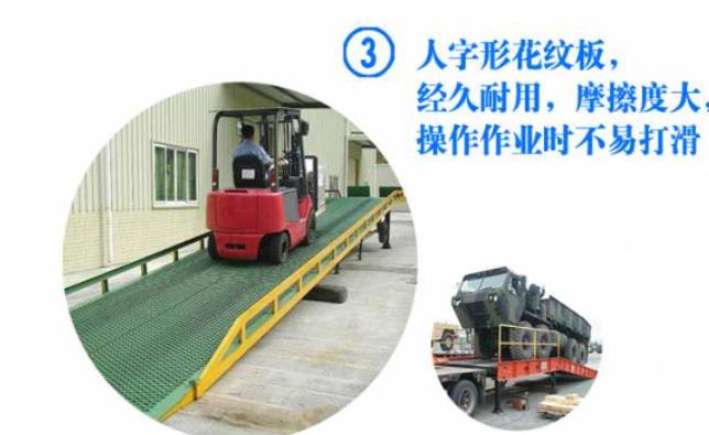 淄博登車(chē)橋-集裝箱登車(chē)橋-叉車(chē)搭橋-折疊式登車(chē)橋是與叉車(chē)配合使用的貨物裝卸輔助設(shè)備。有了它,叉車(chē)能直接從地面駛?cè)肫?chē)車(chē)廂內(nèi)部進(jìn)行批量裝缷作業(yè)。產(chǎn)品采用人工液壓動(dòng)力,不需接動(dòng)力電源,移動(dòng)式登車(chē)橋坡面采用特制的高強(qiáng)度齒形鋼格板,具有的防滑性能,使叉車(chē)有更好的爬坡能力和操控性。即使在雨雪天,仍能保障正常作業(yè)。隨機(jī)配置的剎車(chē)墊,能有效防止叉車(chē)在登車(chē)橋上行走作業(yè)時(shí),登車(chē)橋發(fā)生溜車(chē)及移動(dòng)以保障作業(yè)安全。只需單人操作,即可實(shí)物的安全快速裝卸。