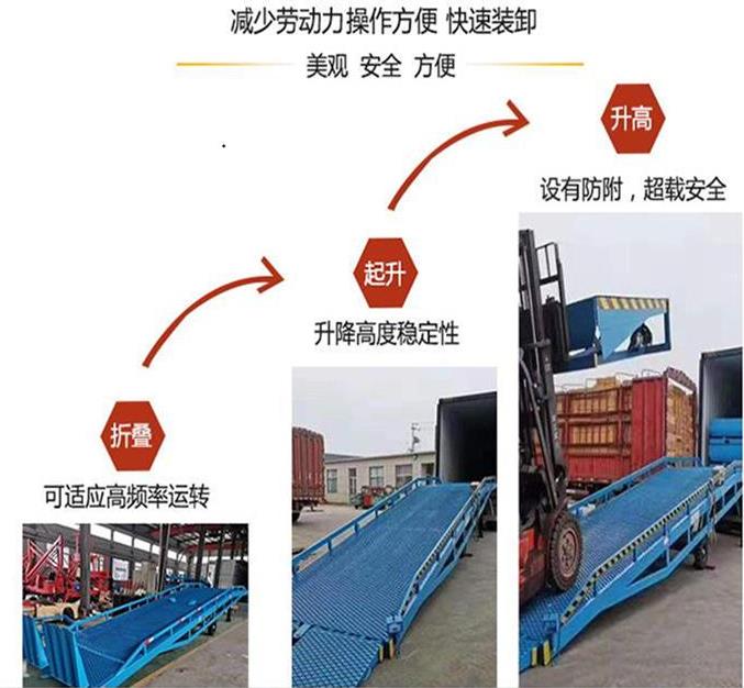 聊城登車(chē)橋-貨臺(tái)裝車(chē)升降平臺(tái)-電動(dòng)液壓固定登車(chē)橋-集裝箱卸貨平臺(tái)-是實(shí)物快速裝卸的輔助設(shè)備,它的高度調(diào)節(jié)功能使用貨車(chē)與庫(kù)房的貨臺(tái)之間架起一座橋梁,叉車(chē)等搬駛及貨車(chē)內(nèi)部進(jìn)行貨物的批量裝卸,僅需單人作業(yè),即可實(shí)物的快速裝卸。它使企業(yè)減少大量勞動(dòng),提高工作效率,獲取更大經(jīng)濟(jì)效益。