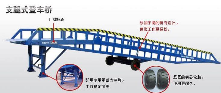 2、支持是登車橋操作的一項重要準備作業(yè),應挑選平坦的地上,如地基松軟或崎嶇不平,有必要用枕木墊實后,才可進行作業(yè)。